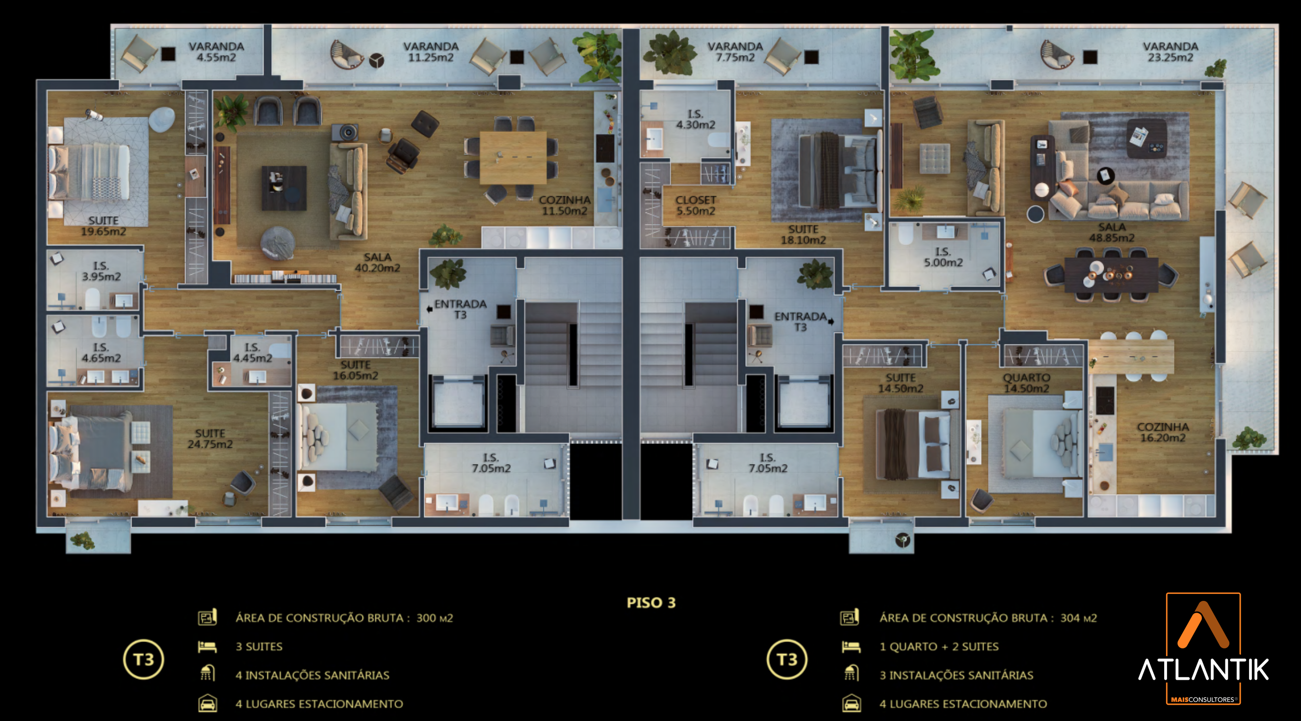 Apartamento T3 com 304m2 : Valor 1 573 200€ c/Vista Mar